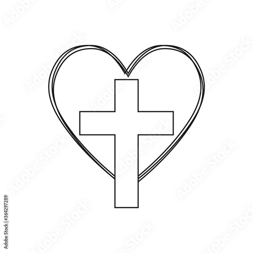 Obraz premium Christian cross in heart, Jesus Christ vector illustration.