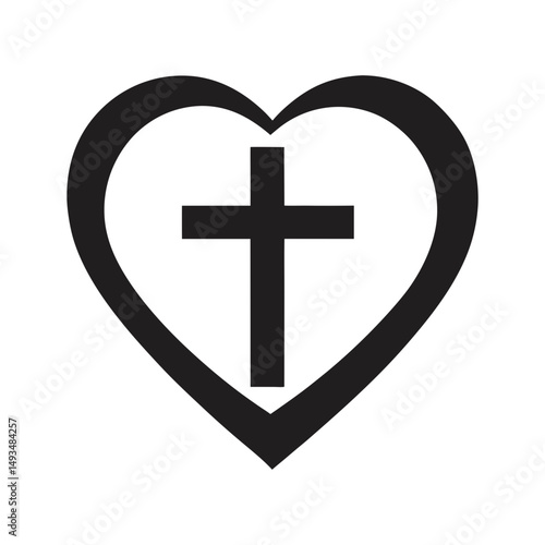 Obraz premium christian cross in heart jesus christ vector silhouette