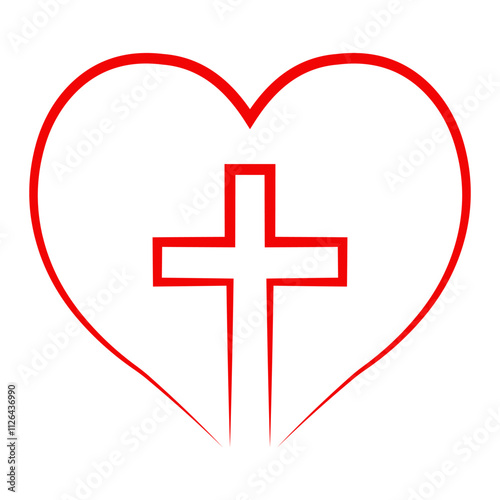 Fototapeta premium Christian cross inside in heart, Christian symbol love and hope
