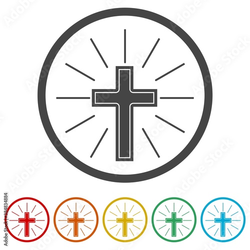 © sljubisa, Fototapeta premium Christian cross ring icon, color set