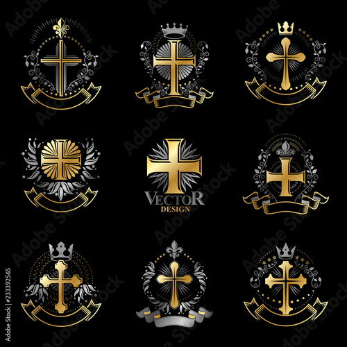 Naklejka premium Christian Crosses emblems set. Heraldic Coat of Arms decorative logos...
