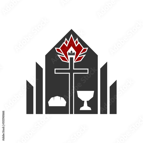 Fototapeta premium Christian illustration. Church logo. Cross and communion symbols.