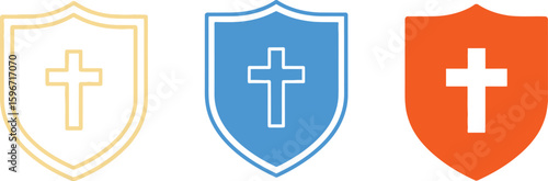 © Saeeda, Obraz premium Christian shield logo vector faith protection symbol religion security icon