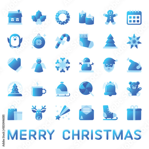Fototapeta premium 30 Christmas and Happy New Year Glass Icon Set and "Merry Christmas" sign....