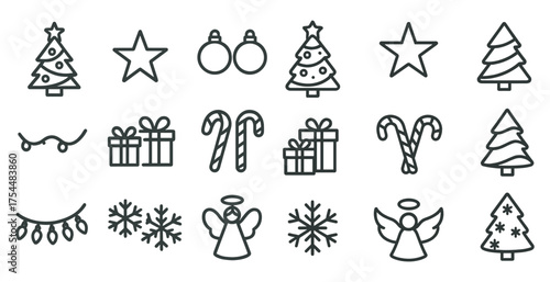 Fototapeta premium Christmas and holiday icons set – outline, linear, festive decorations and...