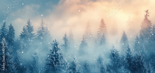 © lali, Naklejka premium Christmas and New Year abstract festive background with winter forest and snowflakes