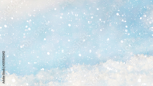 Obraz premium Christmas and New Year background with a blue snowy background, template for...
