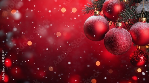 Fototapeta premium Christmas and New Year background with bokeh lights and red balls, copy space