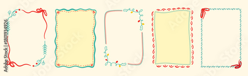 Obraz premium Christmas and New Year decorative frames vector illustration with pastel lights soft red blue curves and delicate seasonal borders — charming design for greeting cards and winter prints
