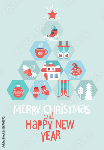 © tandav, Fototapeta premium Christmas and New Year Greeting Card.