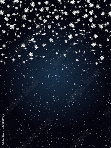 © Ulvur, Fototapeta premium Christmas and New Year night sky vector background. Design for flyer, booklet, poster, coupon, invitation card