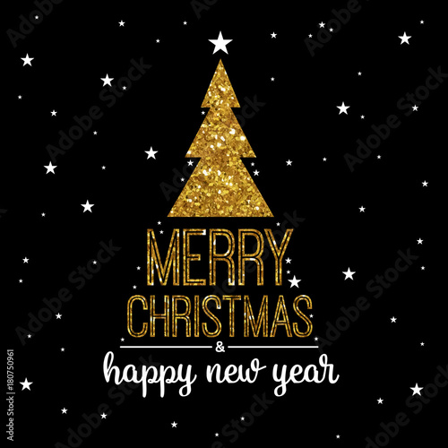 Naklejka premium Christmas and new year snowbound black background with Gold Christmas trees.