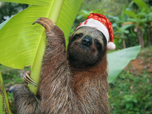 © dam, Fototapeta premium Christmas animal sloth wearing a santa hat