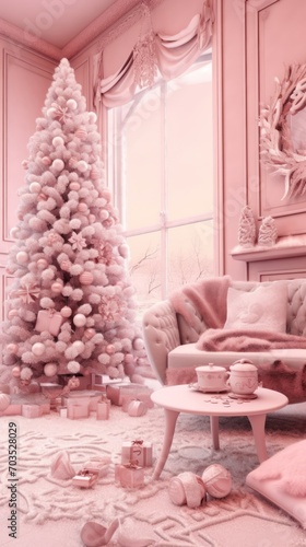 © Oksana, Fototapeta premium Christmas atmosphere in pink