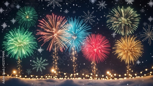 © Afiqah Artwork, Naklejka premium Christmas background filled with twinkling holiday lights and decorated trees.