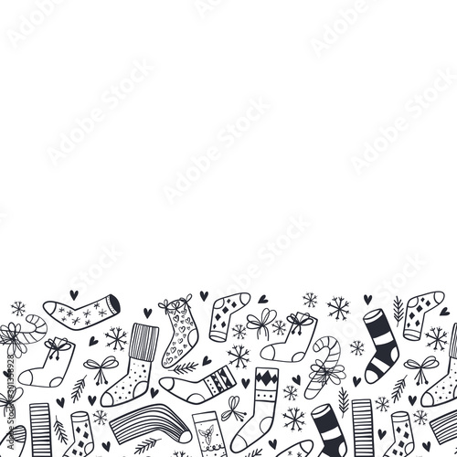 Fototapeta premium Christmas background, hand drawn elements. Ideal for web site, web page, flyer, poster or advert. Monochrome.