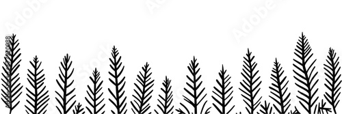 © alexanderze, Naklejka premium Christmas background sketch. Fir branches hand drawn sketch isolated over white.