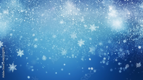 Fototapeta premium Christmas background snow blue background. Christmas snowy winter design. White falling snowflakes,