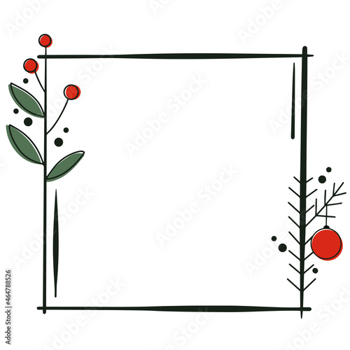 Obraz premium Christmas background with a frame of fir branches and red berries.