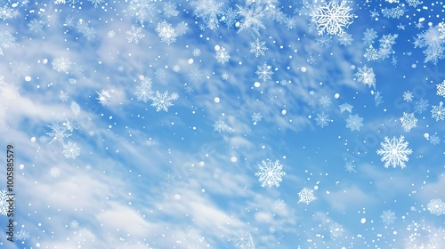 © 笑笑 刘, Obraz premium Christmas Background with Blue Snowflakes Winter
