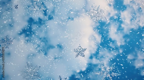 © 笑笑 刘, Obraz premium Christmas Background with Blue Snowflakes Winter