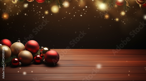 © Dentma Art, Naklejka premium Christmas background with copy space area. Christmas background with wooden texture and Christmas ornaments.