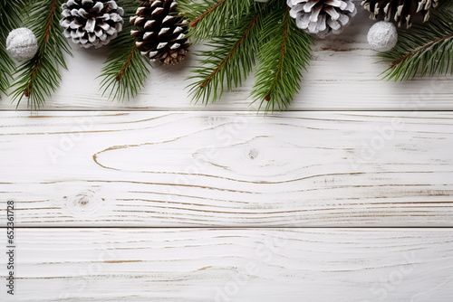 © D85studio, Fototapeta premium Christmas background with fir branches and cones