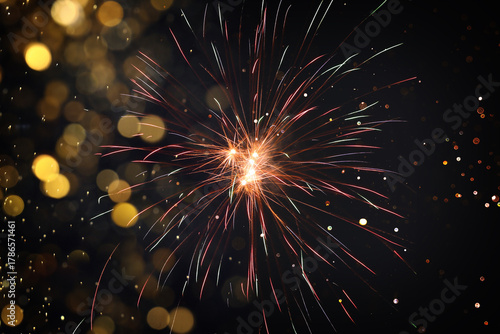 Obraz premium Christmas background with fireworks and bokeh lights. Festive wallpaper or...