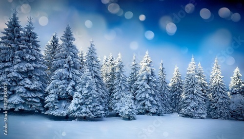 © Joseph, Naklejka premium christmas background with snowy fir trees