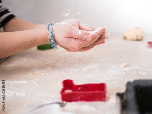 © frederikloewer, Naklejka premium Christmas Bakery: Little Girl holding up her hands