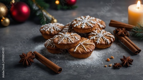 © Artem, Fototapeta premium Christmas baking recipe ideas with ingredients on display
