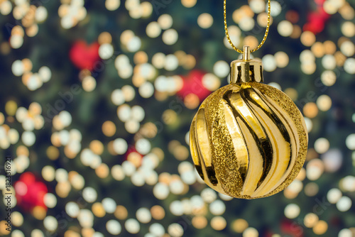 Fototapeta premium Christmas ball bauble hanging decoration with bokeh light background