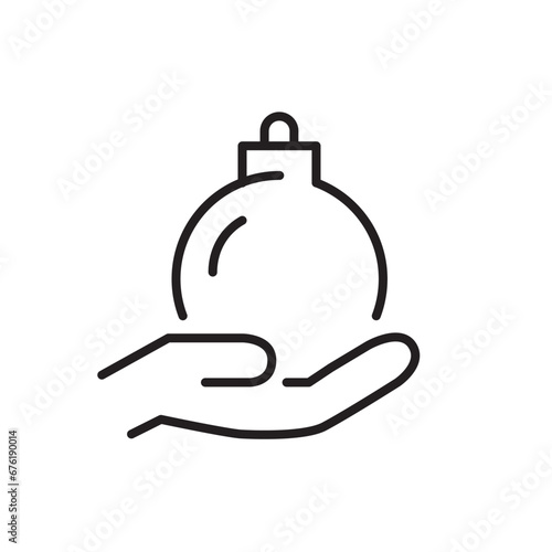 © yasnaten, Obraz premium Christmas ball in hand. Winter holidays celebration. Pixel perfect, editable stroke icon