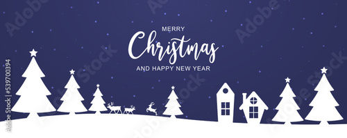 © CLton, Naklejka premium Christmas banner with landscape silhouette design