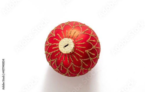 Obraz premium Christmas bauble red color isolated against white background.