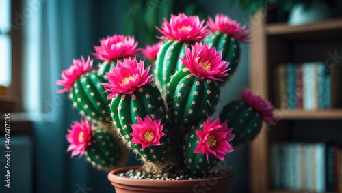 © AImmersive Imagery, Obraz premium Christmas Blooming Cactus with Deep Rose Double Flowers
