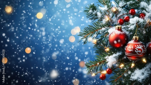 © Johannes, Naklejka premium Christmas blue background with snow.