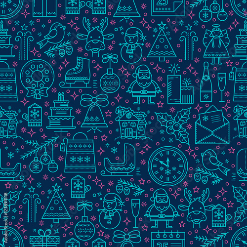 Fototapeta premium Christmas blue seamless pattern
