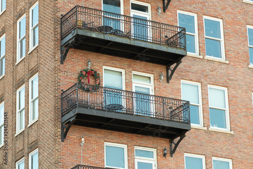 © Stan Reese, Fototapeta premium Christmas Bow on Apartment Balcony