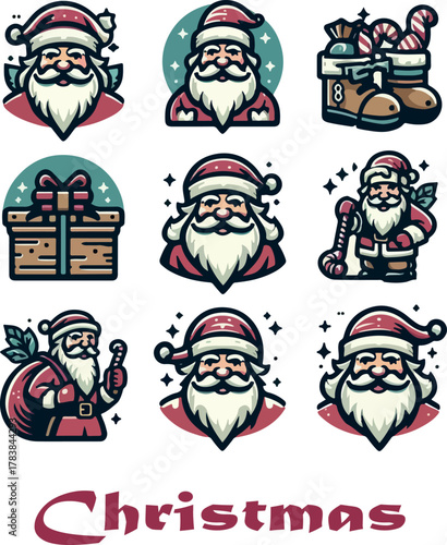 © mesbahul, Obraz premium Christmas bundle logo icon vector white background .