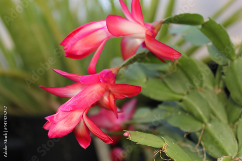 Fototapeta premium Christmas Cactus in Bloom With Pink Flowers S. truncata