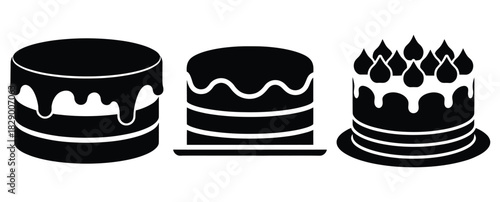 © Bemol, Naklejka premium christmas cake silhouette icon set. christmas silhouette icons collection with solid styles.