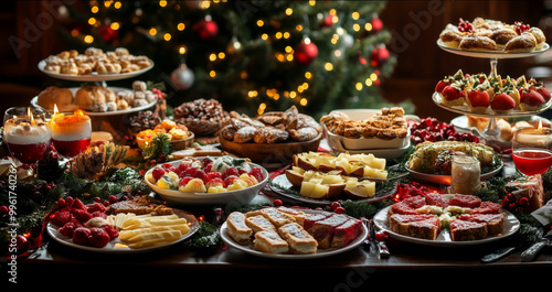 © Pham, Fototapeta premium christmas cakes and food on a table