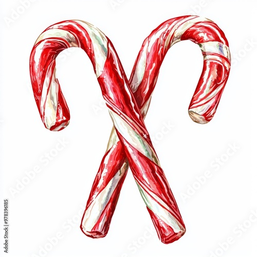 © kharom, Fototapeta premium Christmas candy canes crossed