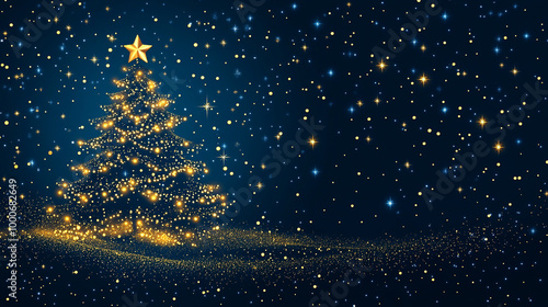 Obraz premium Christmas card banner featuring a beautifully decorated Christmas tree,...