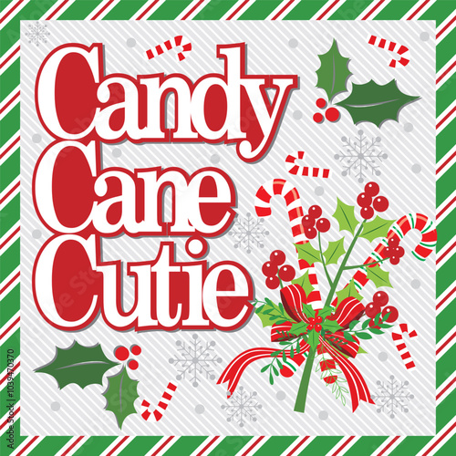 © Erwin, Obraz premium Christmas card design with wreath and candy cane cutie