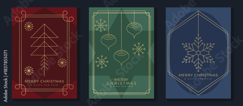 © TWINS DESIGN STUDIO, Obraz premium Christmas card vector illustration with minimal gold line ornaments. Elegant design for holiday cards and celebration themes.