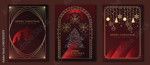 © TWINS DESIGN STUDIO, Obraz premium Christmas card vector illustration with modern gold line decoration. Elegant design for greeting cards and winter themes.