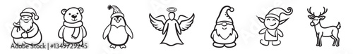 © Capuccino, Obraz premium Christmas Characters: Outline Icons