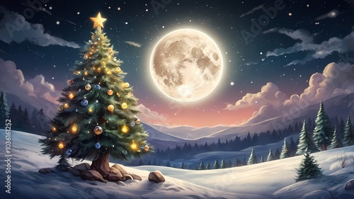 © Pongsatorn, Naklejka premium Christmas, Christmas tree, background, 2024, 2025, new year, festival, type 000016